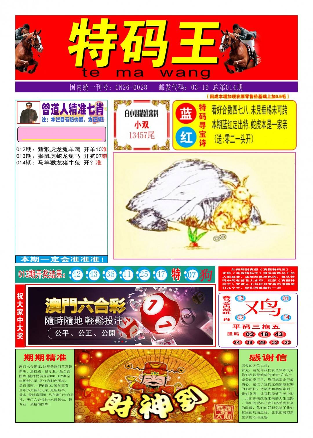 第014期:二字平特一肖【小鸡】开 ??准